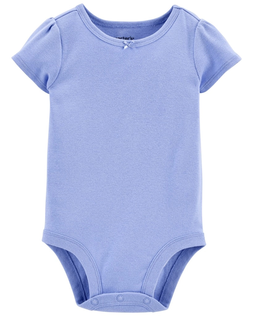 Pohodlné body v jemné fialové barvě, se zpevněným výstřihem a patentkami v rozkroku pro rychlé přebalování.
