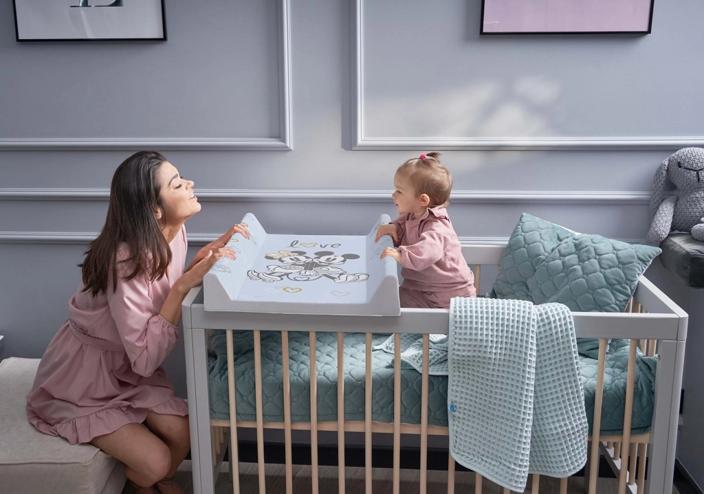 Objevte nadčasový design DISNEY v kombinaci s praktickou konstrukcí pro každodenní péči o miminko. Přebalovací podložka Ceba Baby Comfort s motivem MINNIE & MICKEY v elegantním modrém provedení je zpevněná tvrdou vložkou, takže ji bezpečně umístíte na dětskou postýlku. Díky měkké výplni o tloušťce až 3 cm poskytuje miminku maximální komfort při přebalování.