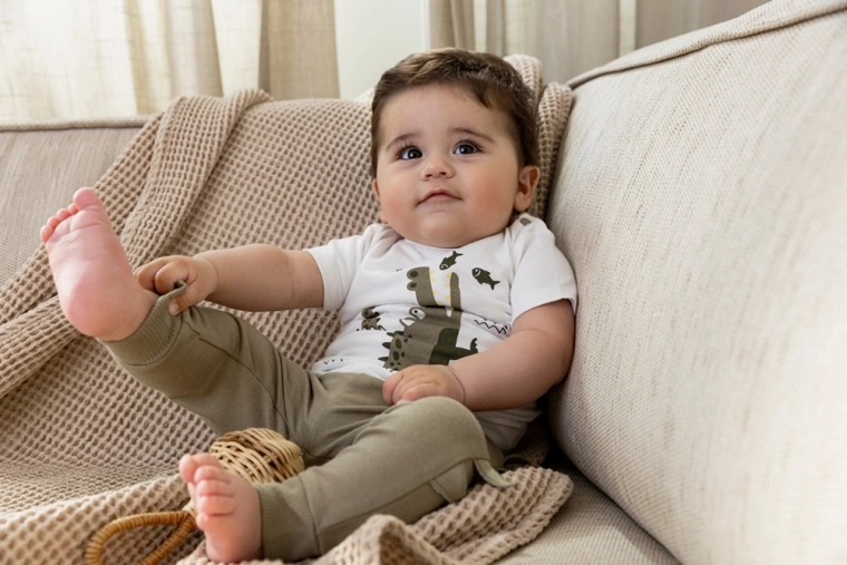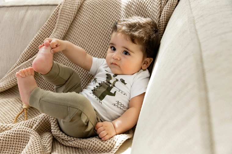 Bavlněný úplet s příměsí elastanu je hebký k dětské pokožce, krásně se přizpůsobí a neomezuje v pohybu při hrách ani odpočinku.