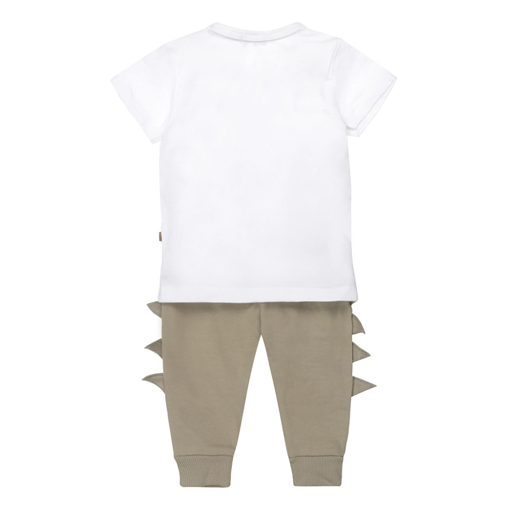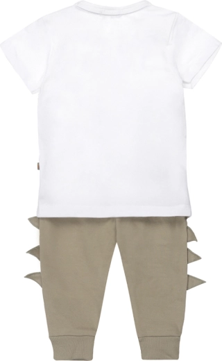 Stylový dětský komplet DIRKJE v bílé barvě kombinuje krátkorukávové tričko a pohodlné tepláky pro každodenní nošení. Díky podílu elastanu je set příjemně pružný, poskytuje volnost pohybu a skvěle sedí. Oceňte kvalitní šití, dokonalý střih a trendy design, který není třeba ladit – outfit je připraven k okamžitému obléknutí.