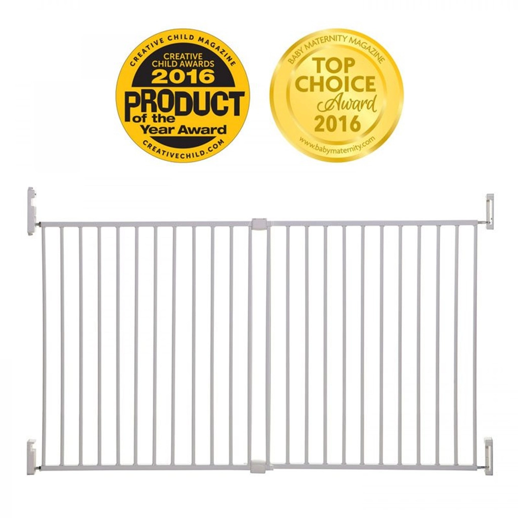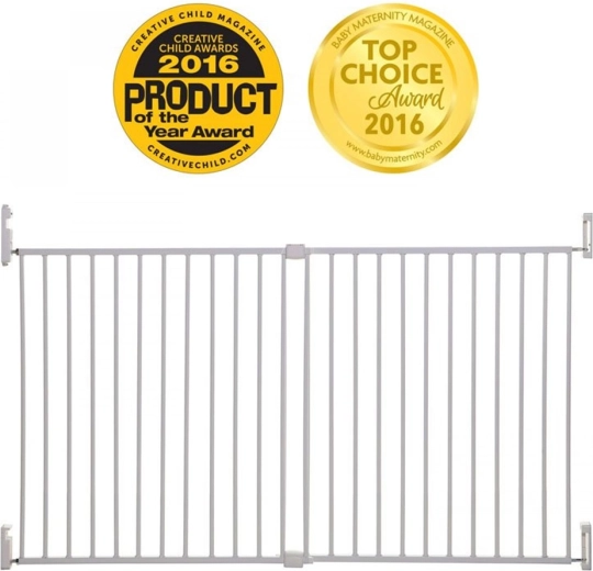 Extra široká bezpečnostní zábrana DREAMBABY Broadway s technologií Track-It chrání děti před nebezpečím v domácnosti. Nabízí ovládání jednou rukou, obousměrné otevírání bez rizika zakopnutí a indikátor EZY-Check pro jasnou kontrolu zamknutí. Díky montáži na hardware je stabilní a vhodná i na vrch schodiště a flexibilně se přizpůsobí otvorům 76–134,5 cm při výšce 76 cm.