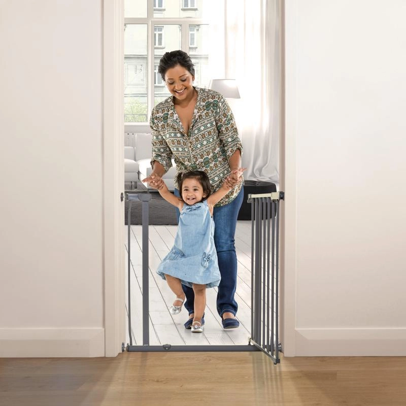 Bezpečnostní zábrana Dreambaby Ava je spolehlivé řešení pro oddělení prostorů v domácnosti. Tlakový upevňovací systém umožňuje rychlou montáž bez vrtání, zatímco robustní kovové provedení v elegantní šedé barvě zapadne do moderních interiérů. Otevírání jednou rukou a obousměrné otevírání usnadní průchod dospělým, přičemž zábrana zůstává bezpečně uzamčená pro děti do 24 měsíců.