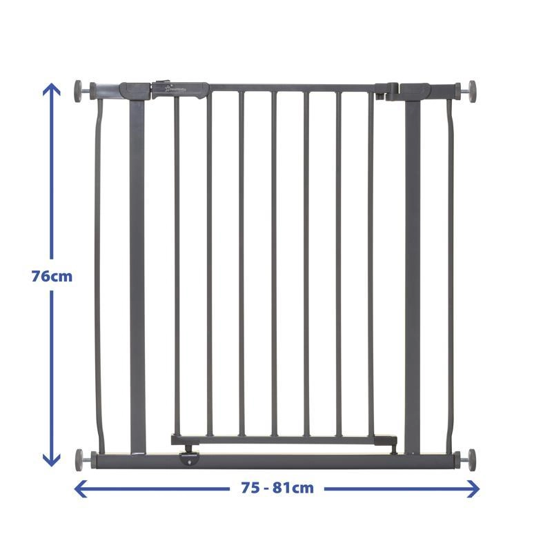Udržte svůj domov bezpečný pro děti i domácí mazlíčky se zábranou Dreambaby Ava. Odolná kovová konstrukce, bezvrtací tlaková instalace a otevírání jednou rukou zajistí pohodlné každodenní používání. Hodí se do otvorů 75–81 cm s možností rozšíření až na 99 cm. Obousměrné otevírání, široký průchod a funkce zůstane otevřená dělají z této zábrany praktického pomocníka pro dveře, chodby i schody.