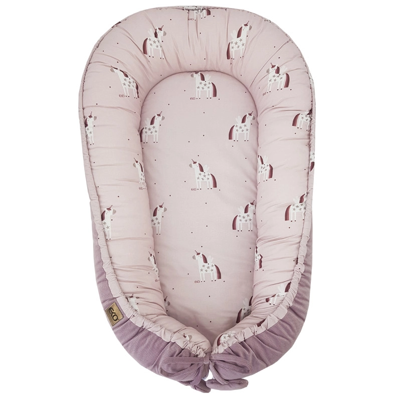 Univerzální dětské hnízdo Eko Unicorn 90 × 60 cm vytváří miminku útulné a chráněné místo doma i na cestách. Vysoké, měkce polstrované okraje pomáhají udržet dítě ve stabilní poloze a usnadňují položení na bok, což je praktické zejména při potížích s refluxem. Vnitřní strana z jemné bavlny a měkký velvet na vnější části zajišťují maximální komfort a teplo.