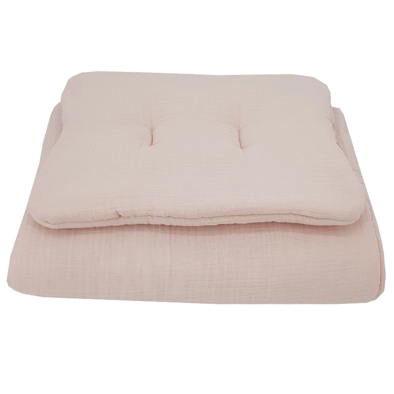 Sladěný polštář 30 × 40 cm a přikrývka 75 × 100 cm krásně doplní dětskou postýlku v jemném odstínu powder pink.