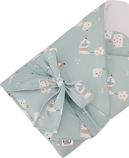 Prémiová zavinovačka EKO v designu Dogs Mint je vyrobena z jemné digitálně tištěné bavlny a hebkého materiálu VELVET. Prodyšná, hypoalergenní výplň zajišťuje optimální teplo a komfort, zatímco vyjímatelná kokosová vložka pomáhá rodičům držet miminko jistě a bezpečně v raném období.