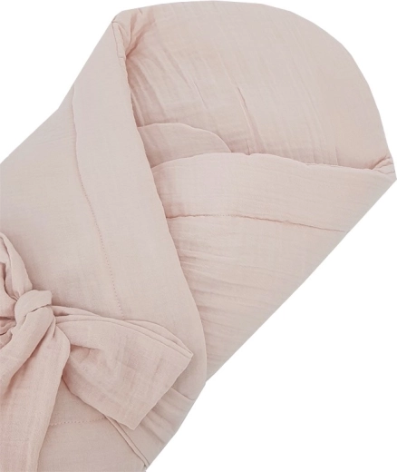Hebká mušelínová zavinovačka v odstínu powder pink poskytne vašemu miminku pohodlí, teplo a bezpečné zabalení od prvních dní života. Je vyrobena z vysoce kvalitní bavlny a vyplněna prodyšným hypoalergenním vláknem pro šetrný kontakt s citlivou pokožkou. Lehká, bez vyztužení, ideální na spaní, kojení i nošení.