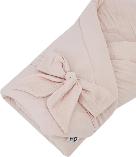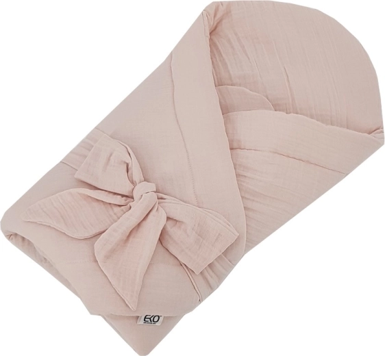 Jemná mušelínová zavinovačka EKO v odstínu pudrově růžové pro pohodlné a bezpečné zabalení novorozence. Díky kokosové vyjímatelné vložce poskytuje stabilnější držení miminka v prvních týdnech života. Prodyšná, hypoalergenní výplň a měkký 100% bavlněný mušelín zajistí teplo a komfort, zatímco nastavitelná mašle dovolí snadno upravit obepnutí.