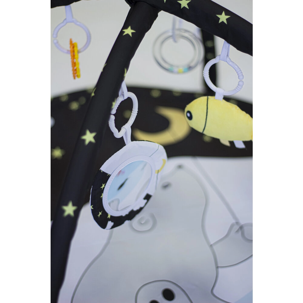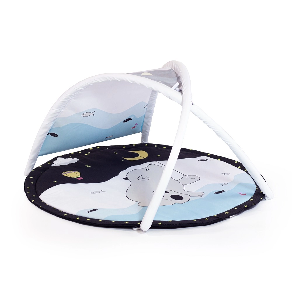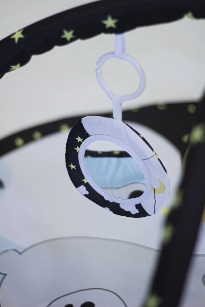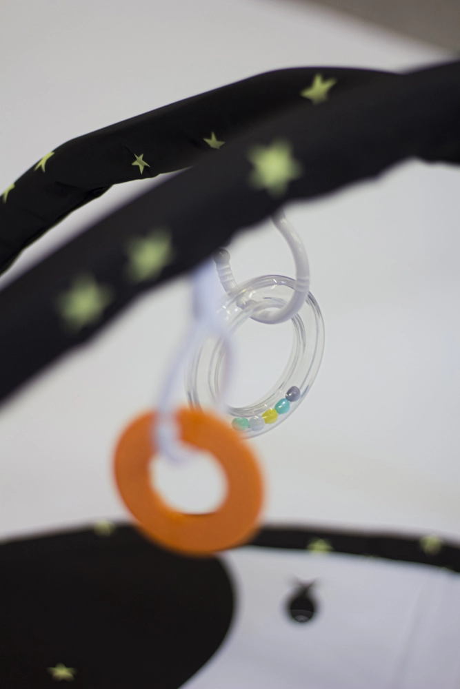 Díky dvěma odnímatelným hrazdičkám a čtyřem závěsným hračkám na C-kroužcích dítě trénuje úchop, koordinaci oko–ruka i motoriku. Variabilní konstrukce umožňuje tři režimy použití: klasickou deku s hrazdičkou, deku se zastíněním a stan týpí pro imaginativní hru.