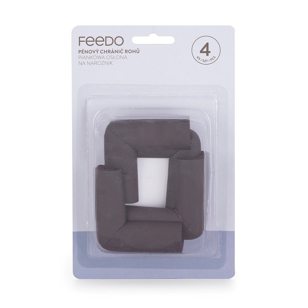 Bezpečí dětí na prvním místě – měkké pěnové chrániče rohů Feedo pomáhají předcházet bolestivým nárazům o ostré hrany nábytku. Díky hnědému provedení skvěle splynou s tmavšími povrchy a nenaruší vzhled interiéru.