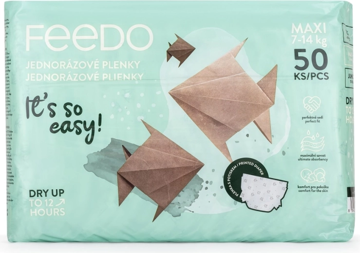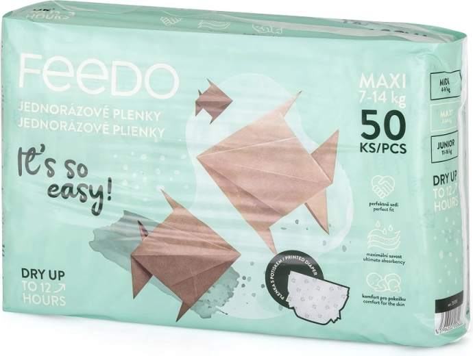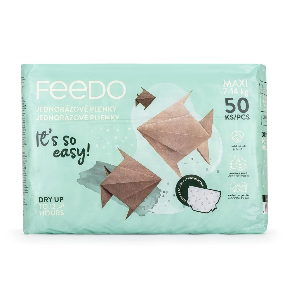 Dopřejte svému děťátku celodenní pohodlí s jednorázovými plenami FEEDO Maxi 4 pro děti o hmotnosti 7–14 kg. Nabízejí až 12hodinovou ochranu, rychlé vstřebání vlhkosti a prodyšné materiály šetrné k citlivé pokožce. Díky flexibilním páskům skvěle padnou a spolehlivě chrání před protečením ve dne i v noci.