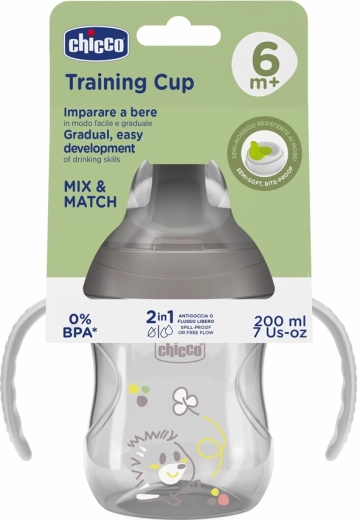 Usnadněte přechod z lahvičky na hrneček s CHICCO Training. Polo-měkký náustek je tvarován pro správné umístění rtů a podporu optimální polohy krku při pití. Odnímatelná ergonomická držadla a tělo s jemným výřezem pro nos zajišťují pohodlné držení i pro nejmenší ručičky.