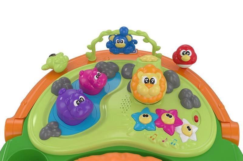 Integrovaný aktivitní hrací panel podporuje rozvoj jemné motoriky a smyslové vnímání. Měkké, pohodlné sedátko a kompaktní skládání zase usnadní skladování i převoz. Držáky na nápoj po obou stranách zpříjemní delší hraní a objevování.
