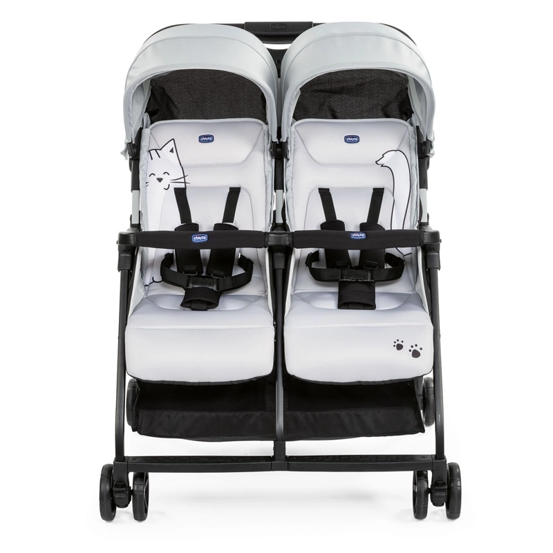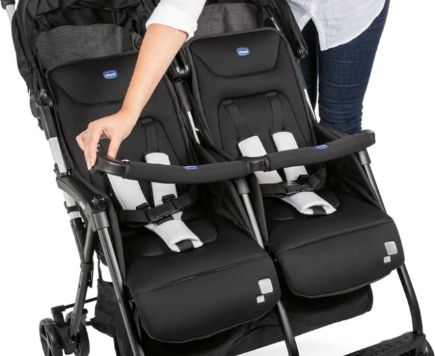 CHICCO Ohlala Twin je mimořádně lehký (8 kg) a ultrakompaktní sportovní kočárek pro dvě děti, který se složí jednou rukou a po složení sám stojí. Každé sedadlo lze zcela samostatně sklopit až do lehu, takže jedno dítě může odpočívat, zatímco druhé sleduje svět.