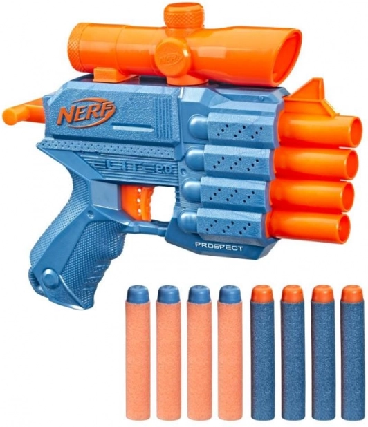 Zahajte zábavné střelby s Nerf Elite 2.0! Tato zábavná zbraň nabízí čtyři hlavně pro rychlou střelbu a osm pěnových šipek pro natankování a náhradní střelivo.