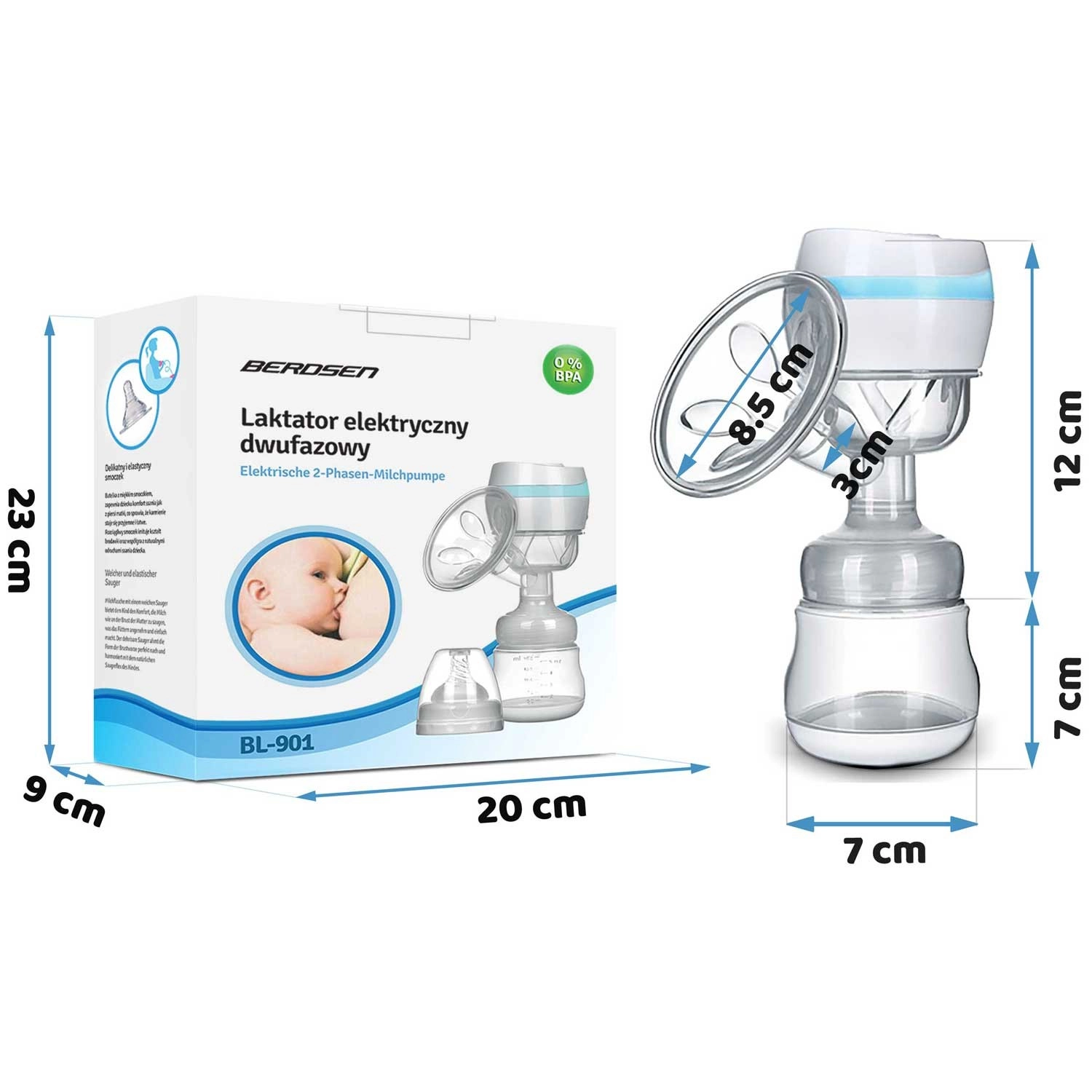 Odsávačka mateřského mléka Berdsen je navržena pro maximální pohodlí a efektivitu. Dvě fáze – stimulace a hluboké sání – napodobují přirozený proces kojení a pomáhají rozběhnout i udržet laktaci. Měkká silikonová masážní vložka jemně přilne a zvyšuje komfort bez bolestivého tlaku.