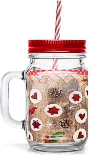 Stylová sklenice s uchem a šroubovacím kovovým víčkem s těsněním pro bezstarostné popíjení doma i na zahradě. Nabízí objem 450 ml, má praktické ucho a originální vánoční motiv lineckého cukroví, který potěší v adventu i po celý rok. Díky víčku nápoj nepřiláká hmyz a při převrhnutí se nevylije.
