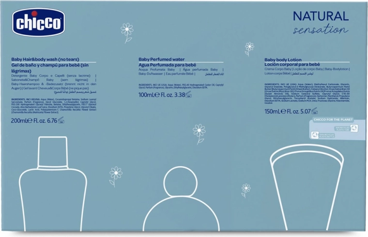 Objevte jemnou péči od prvního dne s dárkovou sadou Chicco Natural Sensation Baby Essential. Tři základní produkty bez alkoholu respektují citlivou dětskou pokožku a přirozené pH. Sada zahrnuje 2v1 šampon na vlasy a tělo s aloe a heřmánkem, vyživující tělové mléko s bambuckým máslem a vitamínem E a jemnou parfémovanou vodu s něžnou vůní. Dermatologicky a pediatricky testováno, vhodné od narození, vyrobeno v Itálii.