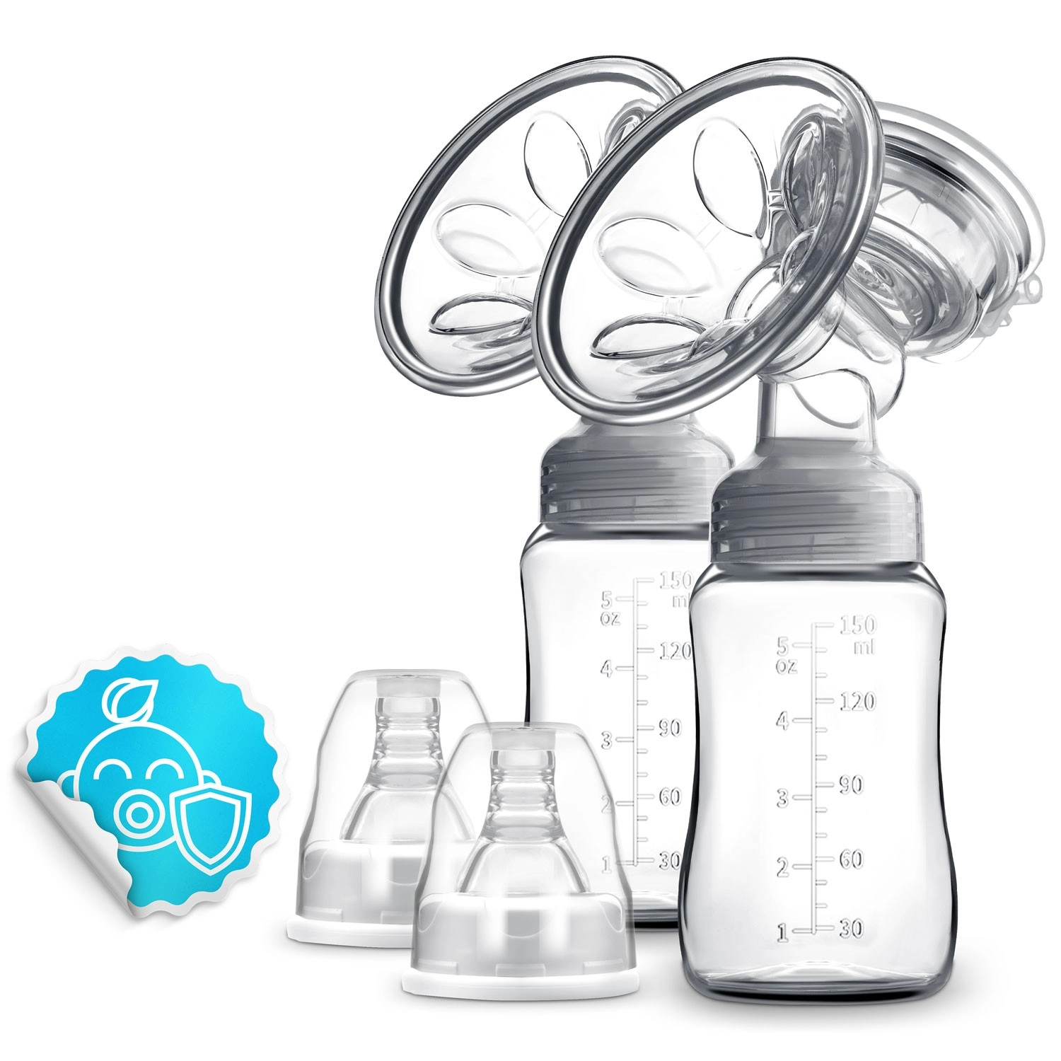 - Praktické příslušenství v balení: 2 lahvičky 150 ml, 2 savičky, 2 sáčky na mléko