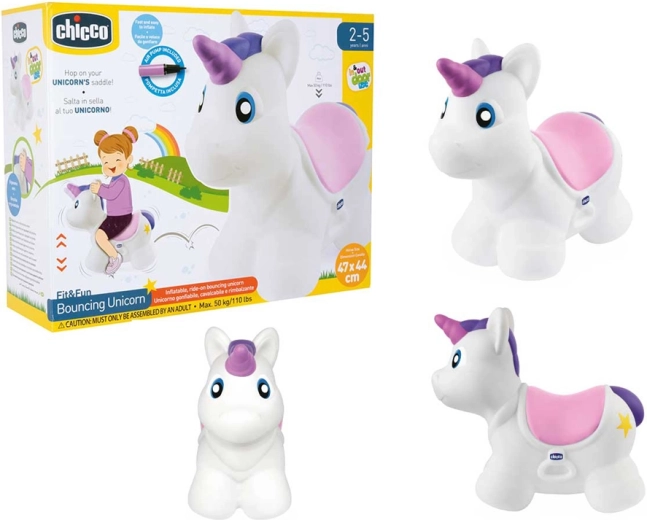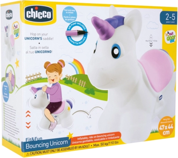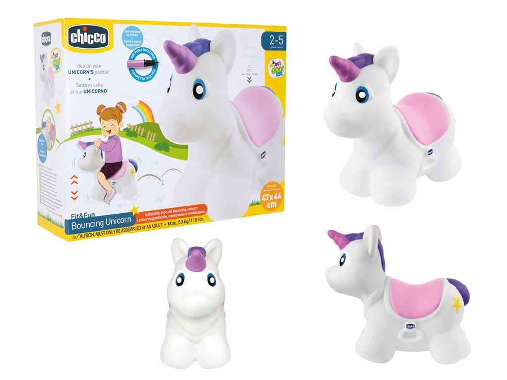 Skákací jednorožec CHICCO je oblíbené dětské skákadlo pro malé dobrodruhy od 24 měsíců. Nafukovací tělíčko s kulatými nožkami zajišťuje stabilitu, zatímco ergonomicky tvarované sedátko poskytuje pohodlí i při delším hraní. Snadno se udržuje, je odolné a připravené na každodenní skákací zábavu.