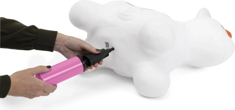 Součástí balení je ruční pumpička pro rychlé nafouknutí a snadné uvedení do provozu. Hračka je vhodná pro vnitřní i venkovní použití na rovném povrchu. Při hře rozvíjí hrubou motoriku, rovnováhu a koordinaci, a zároveň motivuje děti k aktivnímu pohybu.