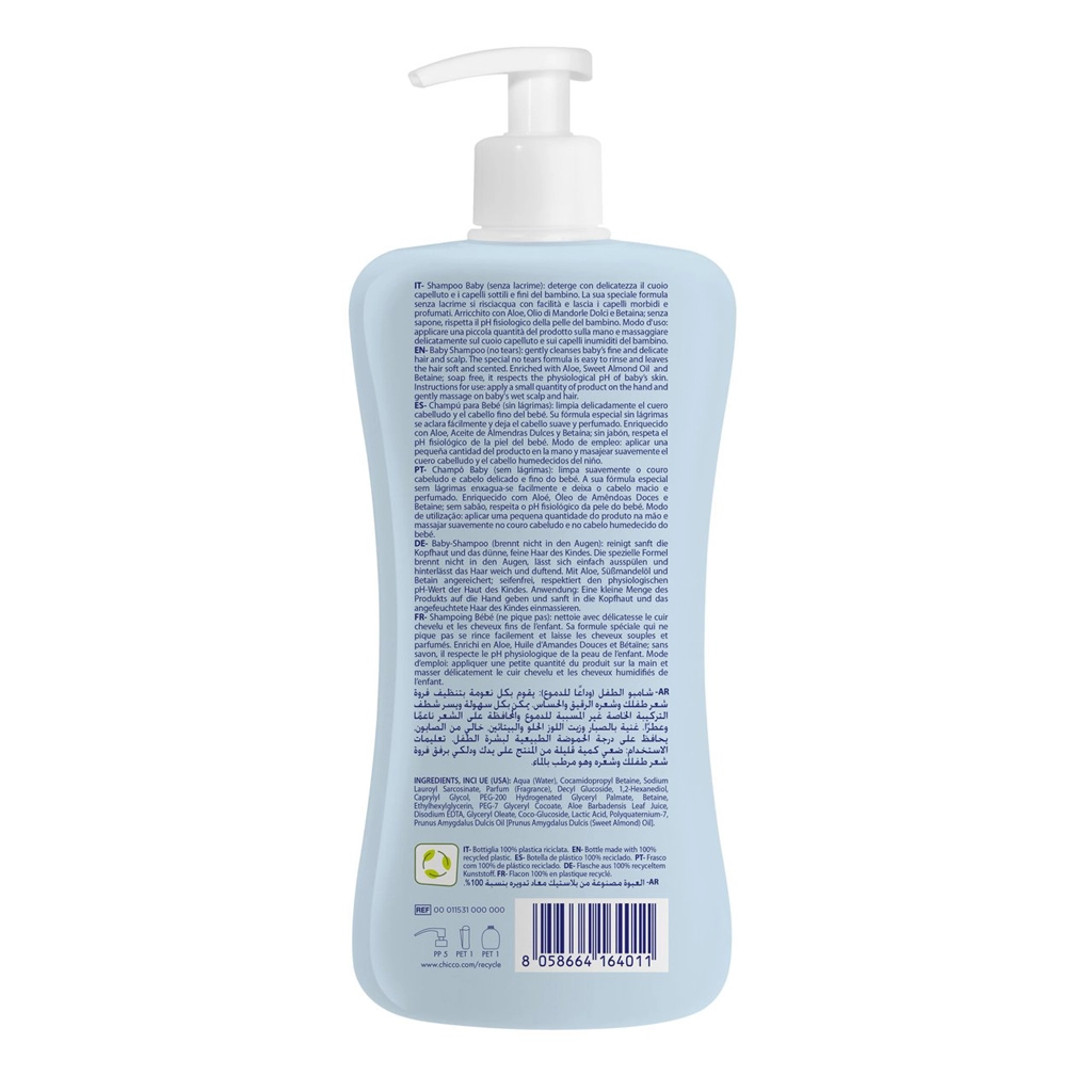 Jemný dětský šampon CHICCO Natural Sensation s aloe pro každodenní mytí od narození. Šetrně čistí, chrání přirozené pH a zanechává vlásky měkké, voňavé a snadno rozčesatelné. Obsahuje aloe vera pro hydrataci a zklidnění a sladký mandlový olej pro zjemnění. Dermatologicky a pediatricky testováno, vyrobeno v Itálii.