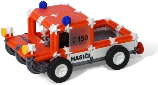 Postavte si hasičský vůz se zvedací plošinou, velkou cisternu s možností natáčení i velitelský (technický) vůz. Nechybí ani tematické samolepky „HASIČI, RESCUE, FIRE“ a číslo tísňové linky 150, které dětem pomohou naučit se důležité zásady bezpečnosti.