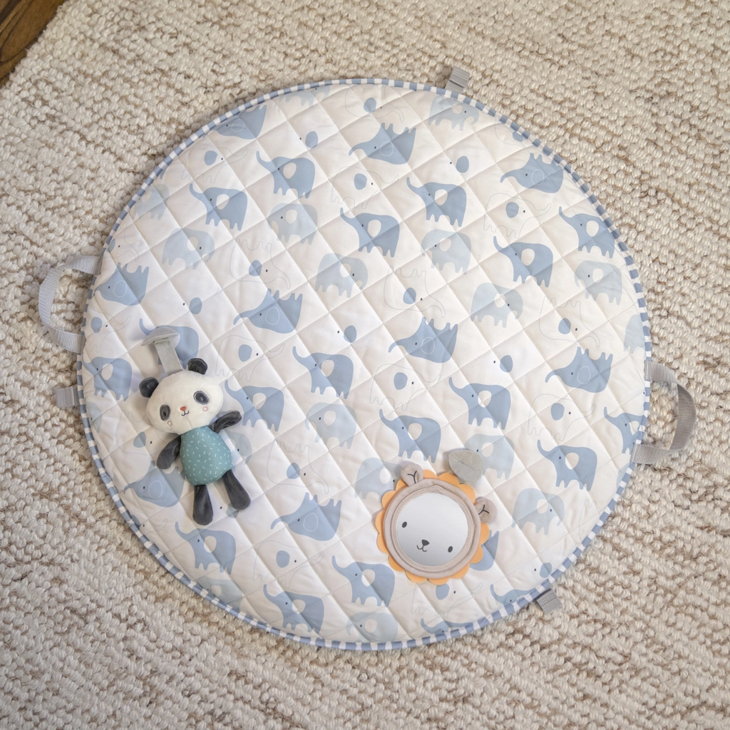 Luxusně měkká a prostorná podložka s obláčkovou strukturou zajistí miminku komfort od narození až do 36 měsíců. Minimalistický, oboustranný potisk skvěle zapadne do každého interiéru, zatímco pevná dřevěná hrazdička s hračkami podporuje koordinaci očí a rukou, uchopování a sledování.