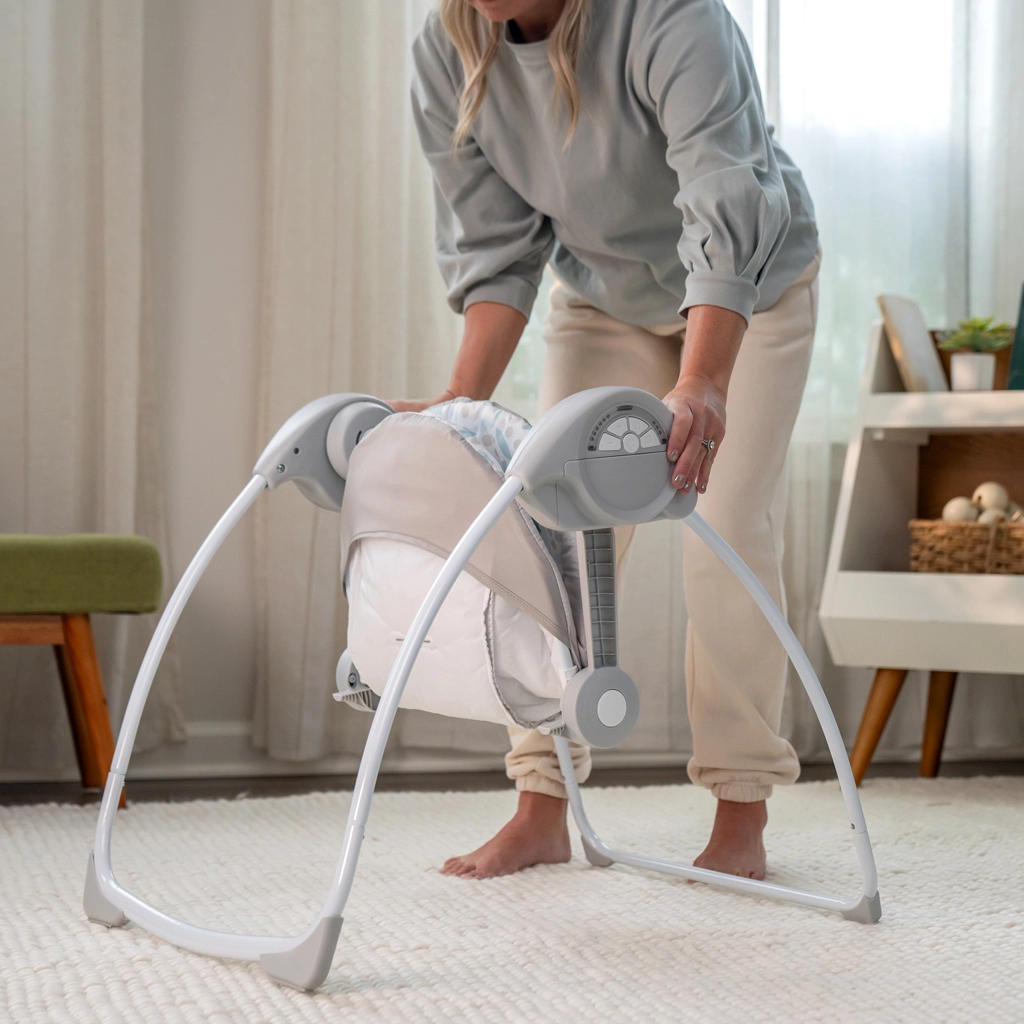 Praktická a přenosná houpačka pro novorozence až do 9 kg přináší jemné uklidňující houpání, příjemnou hudbu a zábavné hračky pro vizuální a sluchovou stimulaci. Technologie WhisperQuiet™ zajišťuje tichý chod, takže nic neruší spánek ani čas na odpočinek. Díky kompaktnímu skládacímu designu ji snadno vezmete kamkoli – k prarodičům, na chalupu i do malého bytu.