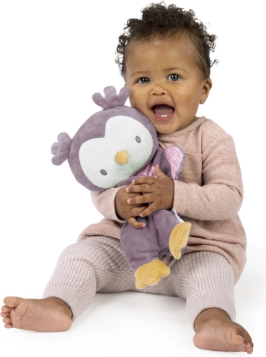 Tvar a měkké křidélka se dobře drží malými ručičkami, takže je sovička ideální do kočárku, postýlky i na cesty.