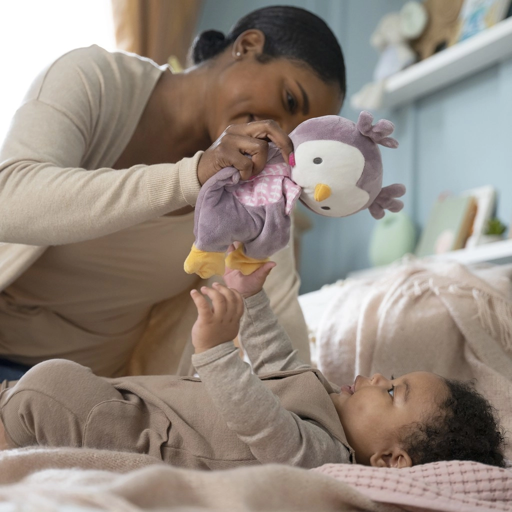 Navrženo tak, aby se snadno drželo malými ručičkami: lehké, měkké a s příjemnými texturami pro taktivní stimulaci. Nally je skvělý společník do postýlky, kočárku i na cesty – roztomilá sovička, která „hlídá hnízdo“ a pomáhá dětem cítit se v bezpečí.