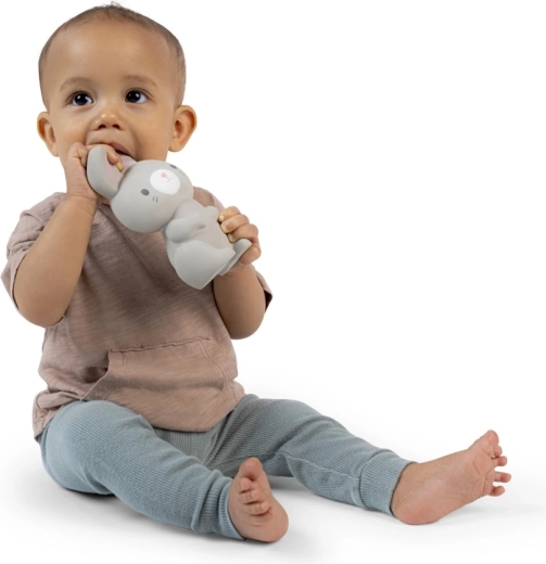 Minimalistické, neutrální barvy se hodí do každé výbavičky a jemná struktura povrchu podporuje rozvoj jemné motoriky. Kousátko je ideální na doma i na cesty – lehké, odolné a zábavné.