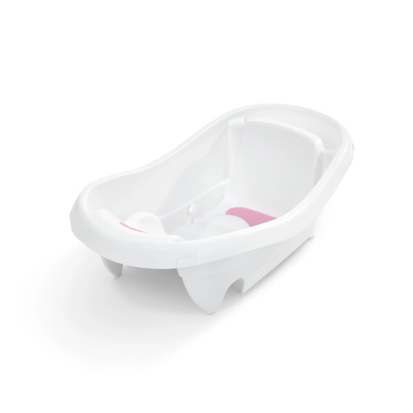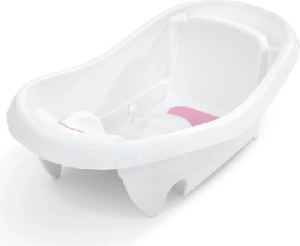 Tvarované boky, polstrované opěradlo a protiskluzové vložky udrží děťátko ve stabilní poloze. Koupání je komfortní a bez zbytečného klouzání.