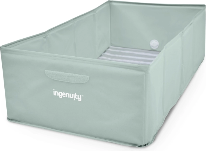 Vanička INGENUITY TuckAway je ideální volbou pro koupání v menších prostorech i na cestách. Díky rozkládacím panelům vytvoříte během chvilky pohodlný a bezpečný kout ke koupání a po použití ji složíte téměř do plochého tvaru. Maximální ryska hladiny pomáhá snadno kontrolovat bezpečné napuštění vody, zatímco vypouštěcí ventil zajistí rychlé vyprázdnění bez zbytečného přenášení.