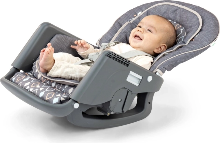 Jedna židle pro všechna období: lehátko, houpací lehátko, vysoká židle s pultíkem i podsedák na běžnou židli. Přizpůsobí se věku i potřebám dítěte.