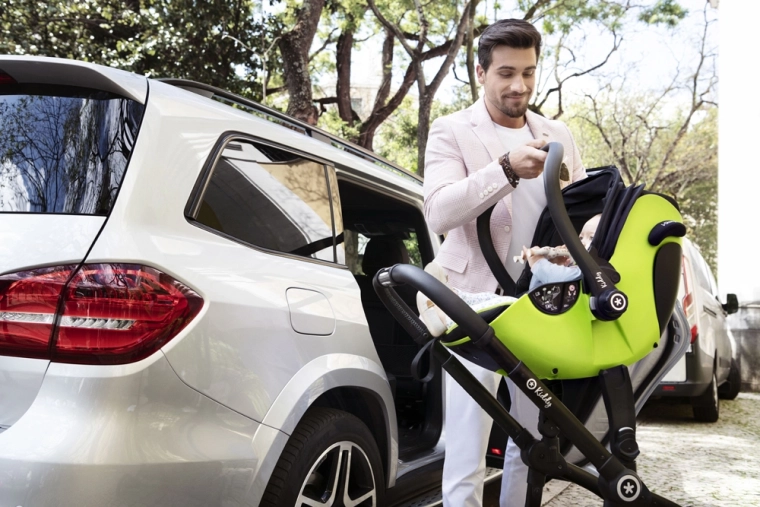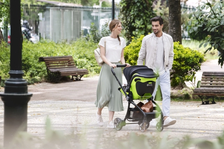 Boční chrániče a flexibilní materiál v oblasti hlavičky pohlcují nárazové síly. Měkká vložka a nastavitelná stříška zajišťují klid a komfort miminka.