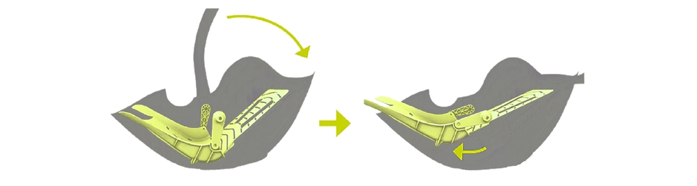 Chytré polohování aktivované madlem umožní dítěti ležet rovně i během jízdy autem (při použití s ISOFIX bází). Podporuje dýchání a zdravé uložení páteře už od narození.