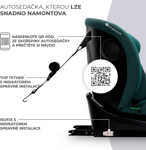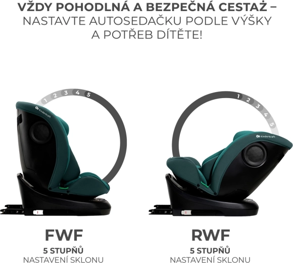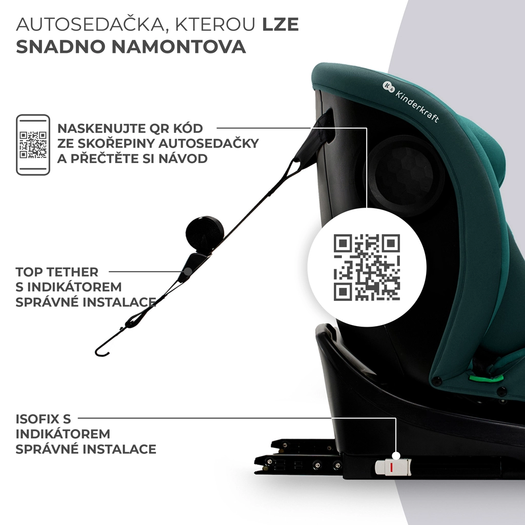 Autosedačka KINDERKRAFT I-GROW splňuje přísnou normu i-Size a roste společně s dítětem v rozmezí 40–150 cm. Díky otočné základně 360° dítě snadno připoutáte jednou rukou a bez složité manipulace změníte směr jízdy RWF/FWF. ISOFIX s indikátory správného upevnění a horní úchyt TOP TETHER zajišťují pevnou a bezpečnou instalaci.