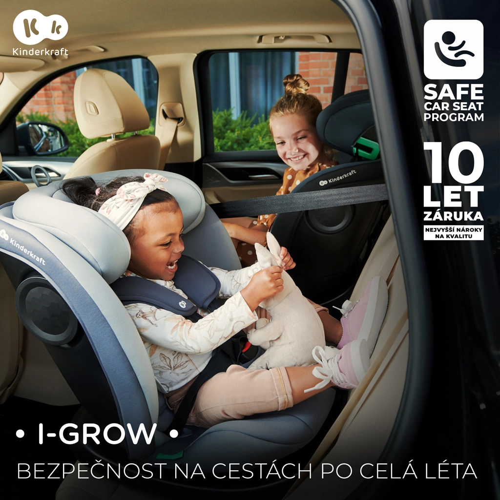 Univerzální autosedačka KINDERKRAFT I-GROW i-Size doprovodí vaše dítě od narození až do cca 12 let. Nabízí otočný systém EASY SPIN 360°, bezpečnou instalaci ISOFIX + TOP TETHER, RWF až do 4 let a pokročilé ochrany H-GUARD a SIDE PROTECT SYSTEM+ pro maximální bezpečí a pohodlí na každé cestě.