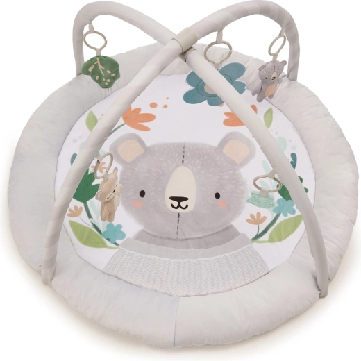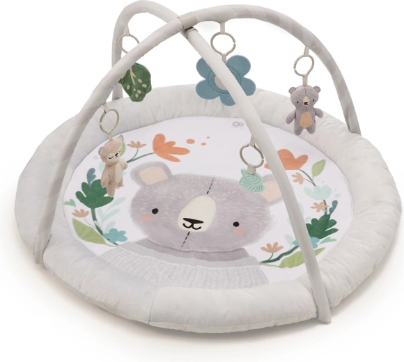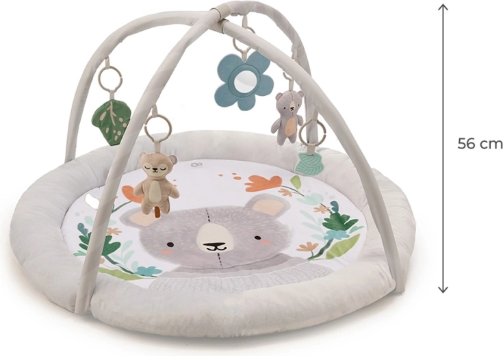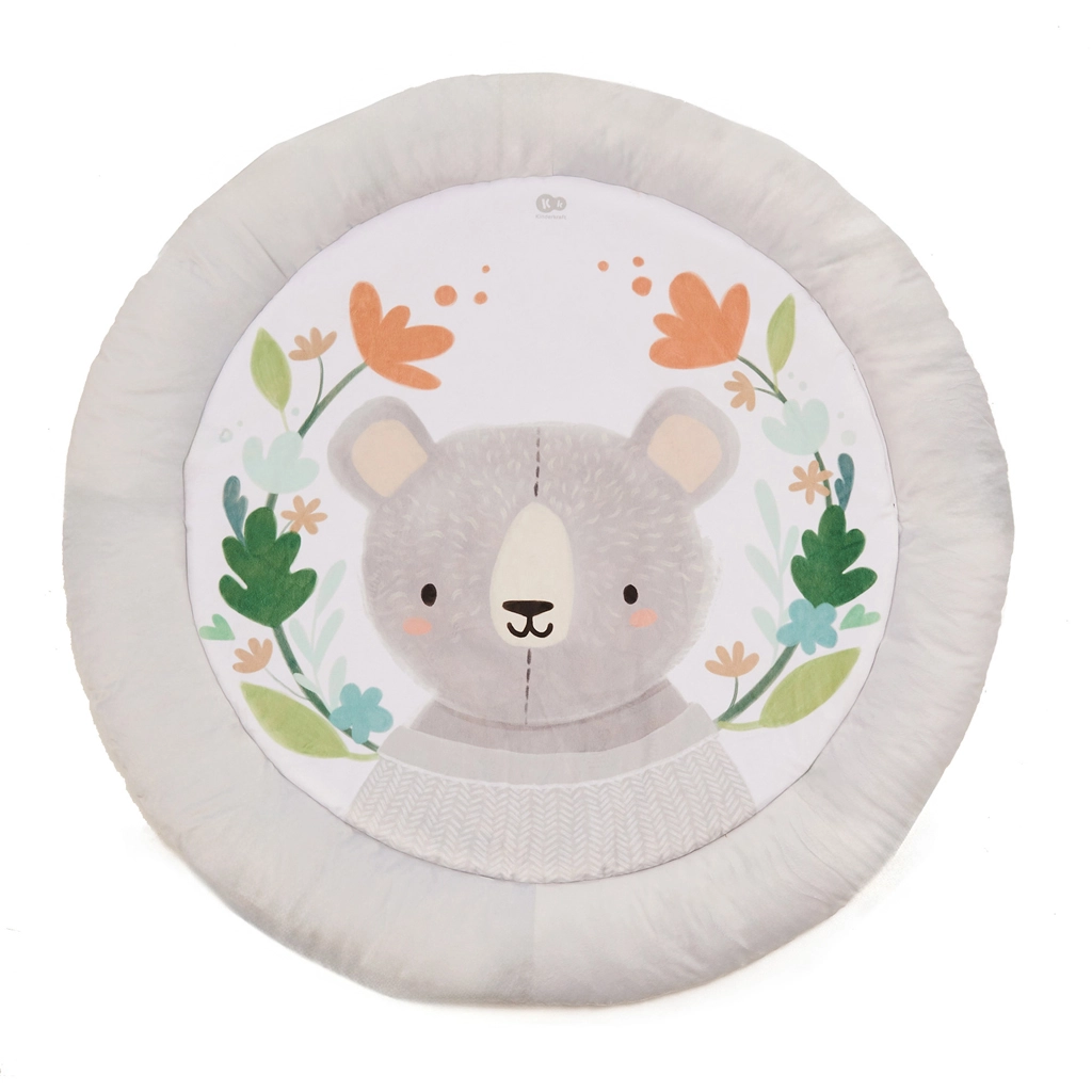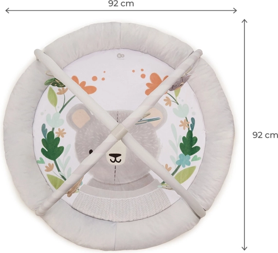 Pohodlně polstrovaná kulatá podložka s příjemnými materiály poskytne miminku útulné zázemí pro hru i odpočinek.