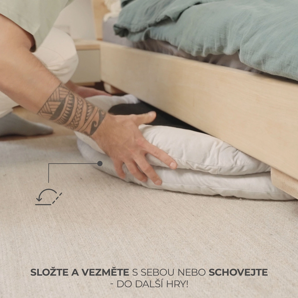 Díky pratelnému potahu je údržba snadná a rychlá. Skladná konstrukce usnadní ukládání i přenášení – vezmete ji pohodlně na návštěvu i na dovolenou. COZYPLAY je skvělou volbou pro rodiče, kteří hledají kvalitní hrací podložku s důrazem na vývoj dítěte i estetiku domova.