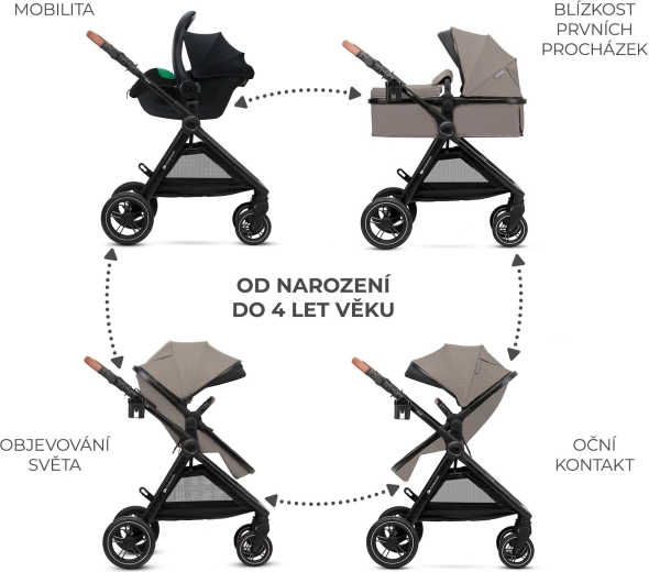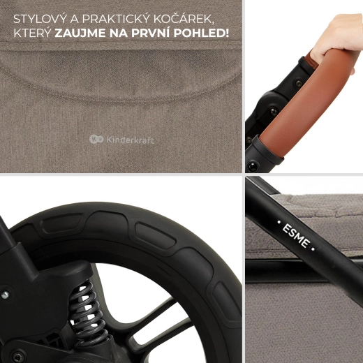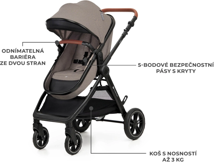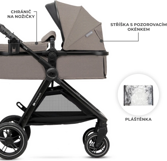 Pohodlí na každém povrchu – velká odpružená nepropíchnutelná TPE kola jsou lehká, obratná a vhodná do města i do terénu. Kočárek se snadno ovládá, přední kola lze zablokovat pro jízdu rovně a celé šasi složíte kompaktně i se sedadlem – ideální na cesty.