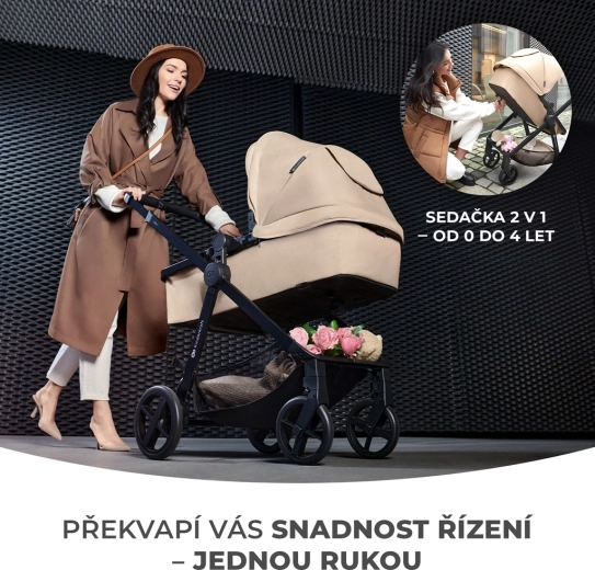 Jedna jednotka pro obě fáze – hluboká vanička se během okamžiku změní na prostorné sportovní sezení po i proti směru jízdy. Kočárek váží jen 7,5 kg, takže se skvěle ovládá a přenáší.