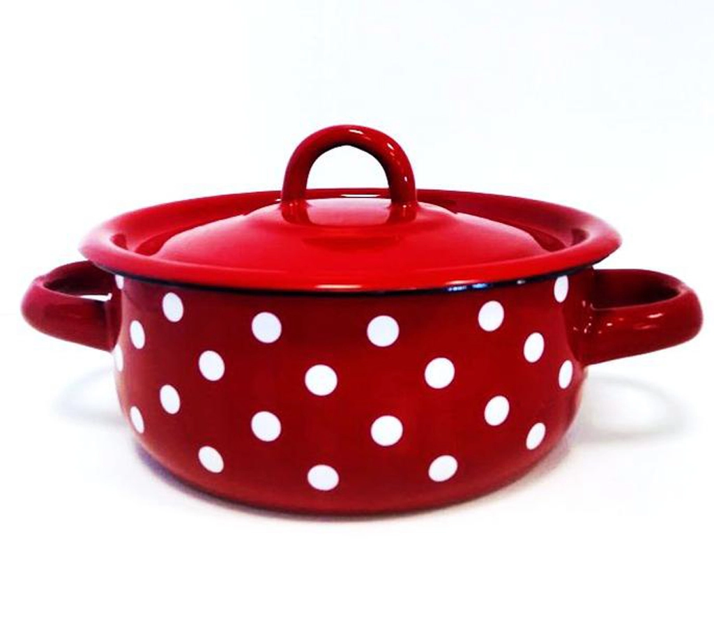 Stylový smaltovaný hrnec s poklicí o objemu 1,5 l v ikonickém dekoru červený puntík je ideální pro každodenní vaření. Je vhodný na všechny typy sporáků včetně indukce a díky dvěma pevným uchům se snadno přenáší. Odolný smaltovaný povrch zajišťuje dlouhou životnost i snadnou údržbu.