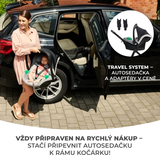 - Travel system – autosedačka MINK PRO i-Size + základna ISOFIX + adaptéry v balení.