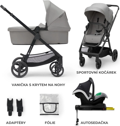 - Kombinovaný kočárek 4v1 (vanička/sportovní sedák + autosedačka + základna + adaptéry)