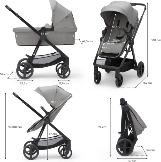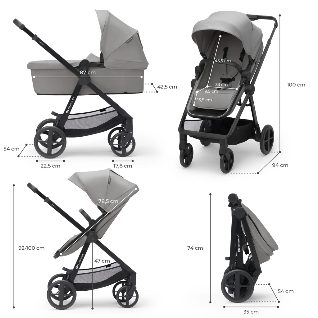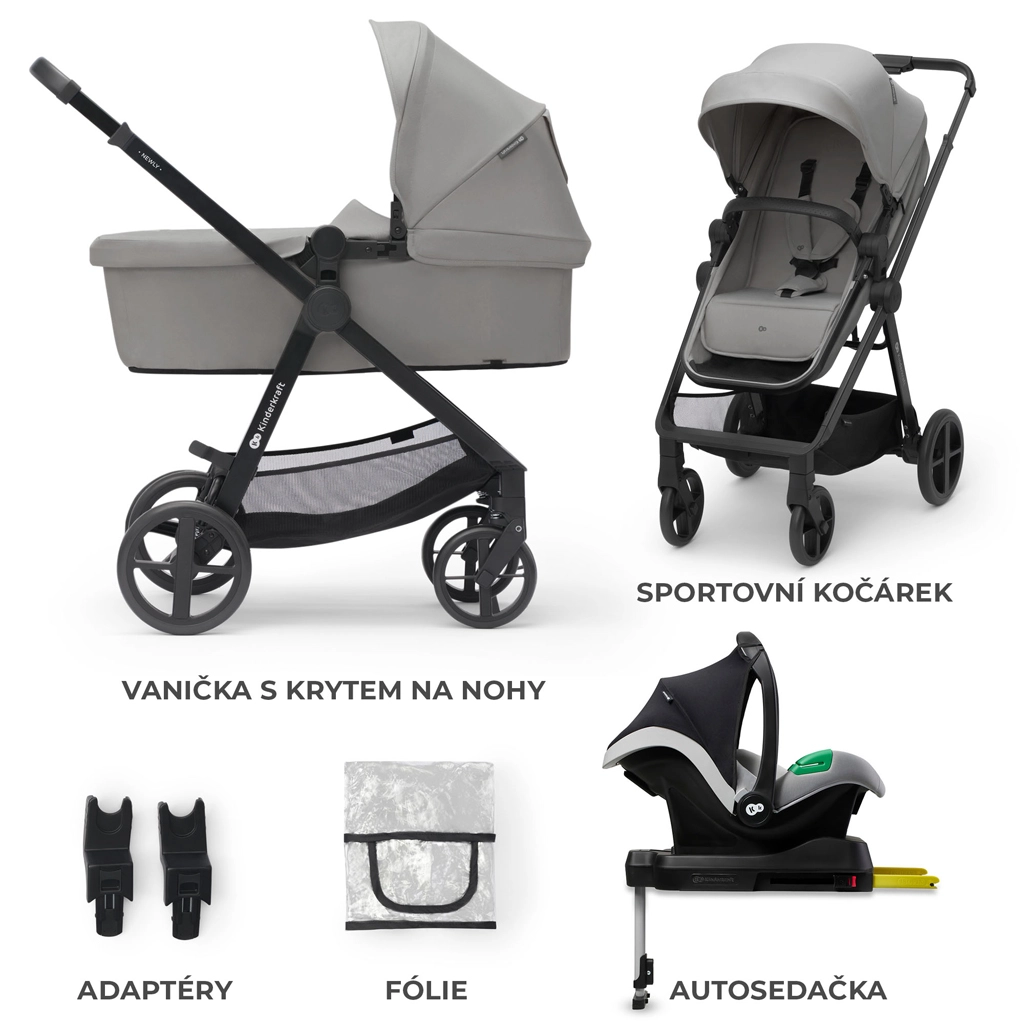 KINDERKRAFT Newly 4v1 je všestranný kočárek od narození až do 22 kg, ideální pro město i výlety. Díky hmotnosti pouhých 7,5 kg se skvěle přenáší, snadno se skládá i s nasazeným sedákem a ve složeném stavu zabere minimum místa v kufru. Sedák 2v1 rychle změníte z hluboké vaničky na sportovní sezení, a to po i proti směru jízdy.
