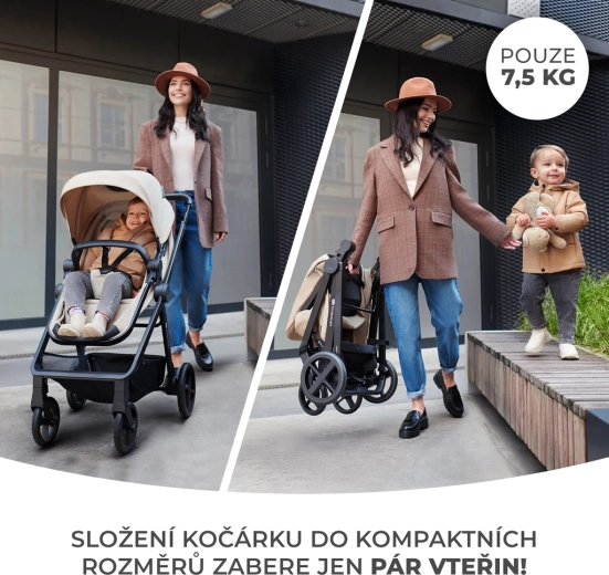 - Lehký a kompaktní – jen 7,5 kg, rychlé skládání se sedákem.