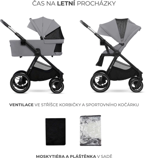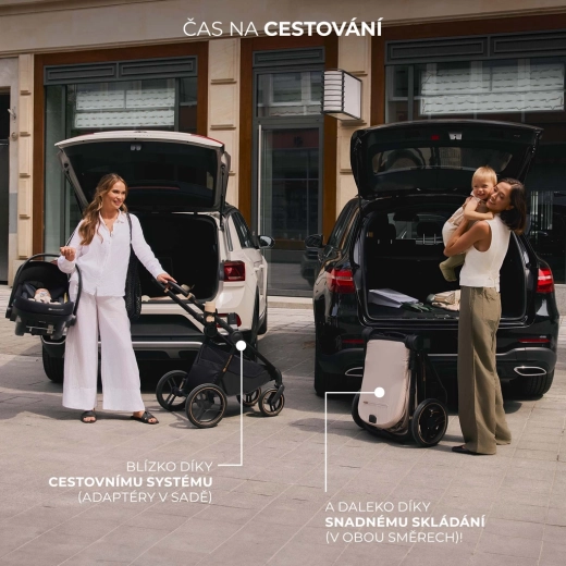 Rodiče ocení intuitivní STOP & RIDE brzdu, magnetickou přezku pro rychlé zapnutí, pratelné potahy a praktické skládání s funkcemi SELF STANDING a AUTO LOCK pro snadné přenášení i skladování. Velký košík unese až 5 kg, a díky univerzálním adaptérům pro autosedačku vytvoříte během chvilky šikovný travel systém. Součástí je bohaté příslušenství: pláštěnka, síťka proti hmyzu, nánožníky, držák na nápoj, přebalovací taška a další.