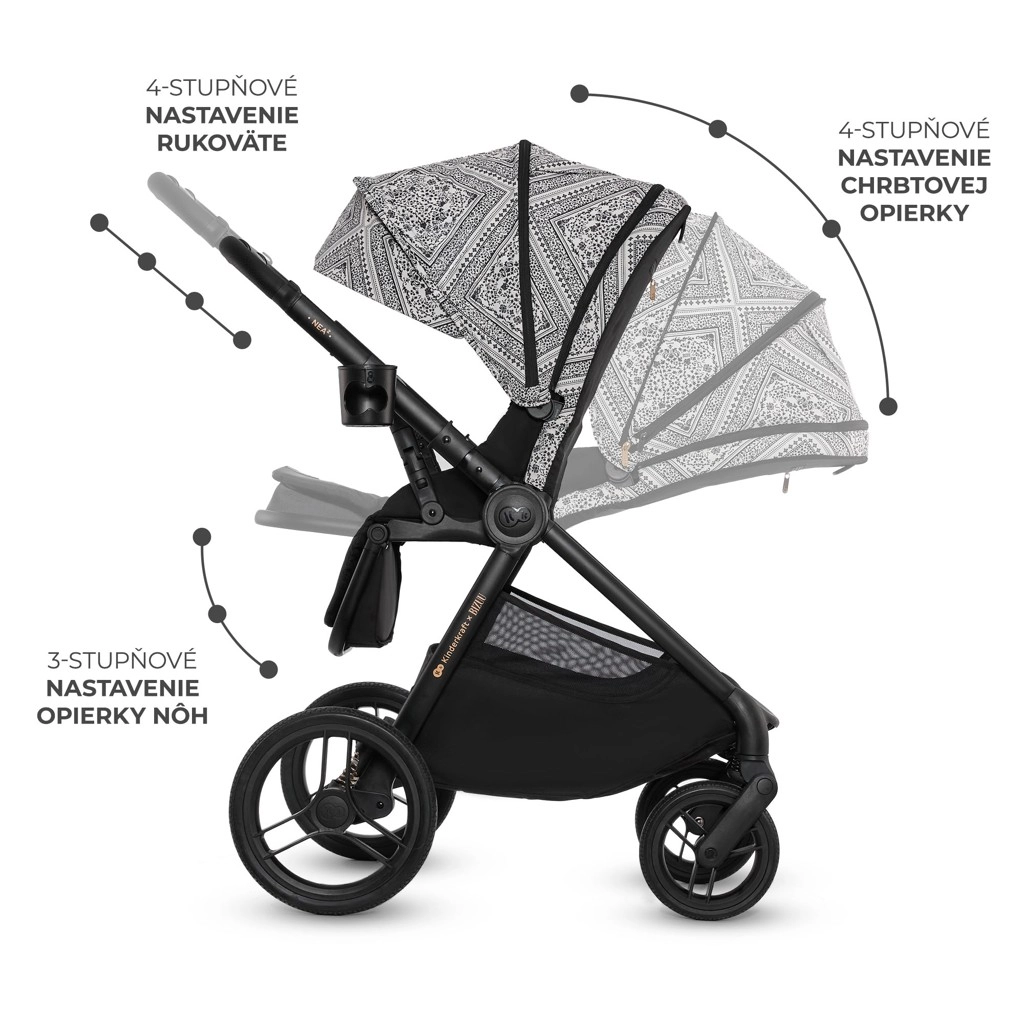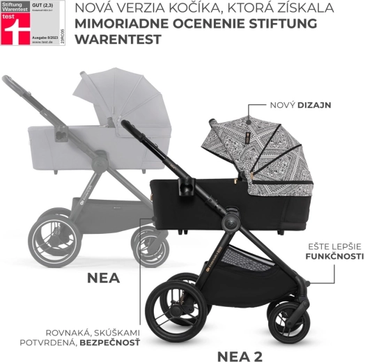 Stylový a praktický kočárek NEA 2 2v1 z limitované kolekce Bizuu spojuje kompaktní design, velká bezúdržbová kola do města, pohodlnou korbu od narození a sportovní sedák do 22 kg. Nabízí obousměrné sezení, jednoduché skládání se systémem AUTO LOCK, brzdu STOP & RIDE, bohatou sadu příslušenství a stříšku z nepromokavé tkaniny s UPF50+ pro celoroční ochranu.